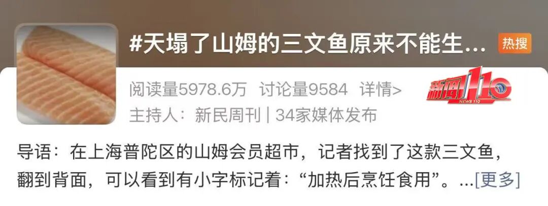 媒体调查发现,这款大家争相抢购的三文鱼,包装上有一行说明“加热后烹饪食用”。换句话说,这款三文鱼并非设计用于生食。